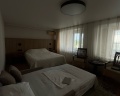 В номере белоснежные белье, полотенца, одноразовые тапочки и приборы гигиены. Каждый день меняли на новое и убирали номер ежедневно. В номере кондиционер, телевизор, холодильник, чайник, чашки и пакетированный чай с сахаром, двери номера закрываются на ключ, советский лифт, но очень шустрый. Из негативного была сломана дверца душевой кабины, но ловкость рук, и никаких пролилов в ванной комнате. За свои деньги, в принципе хорошая гостиница и даже такие негативные мелочи не испортили отдых. Для меня не хватило халата в номере. В целом приятное впечатление. Если у клиентов не завышенные рамки.