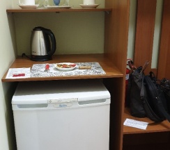 В номере холодильник, чайник, чай и кофе. Однако в чайник запас воды никто не пополняет.