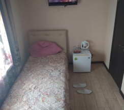Были проездом с Комсомольска-на-Амуре до Ливадии. Номера в гостинице получилось забронировать заранее за 2 дня, администратор - милая женщина, которая смогла подобрать удобные номера. В номерах есть кондиционер, чайник и телевизор, а также туалетная комната с душем, правда очень компактная. Есть необходимые принадлежности для гигиены. Правда на окнах не было сеток, а до заселения номера проветрили. Так что нас встретило немало комаров. Постели все свежие, что очень приятно после длительной поездки. Для остановки на одну ночь подходит.