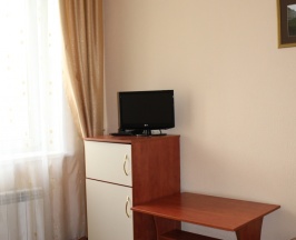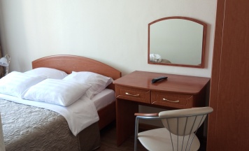 Двухместный номер на 2 этаже: площадь 13 м2, кровать двухспальная (140см), кабельное ТВ, телефон городской связи и холодильник. В ванной комнате душевая кабина.