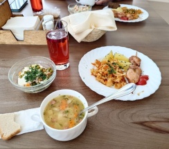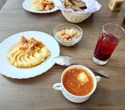 Отличная база для отдыха с детьми. Брали стандарт с раскладушкой. Спокойно. Чисто. Уютно. Очень питательное и вкусное комплексное питание в ресторане Маяк. Есть песчаный берег. Много проката всякого транспорта на берегу в сторону Баден-баден. Брали четырехместный белый катамаран в деревянном домике на берегу. Самый дешёвый вариант катамарана. На катамаране за 3 часа прогулялись на о.Веры. Час гуляли на острове. Не устали. Рекомендую!