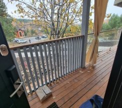 В двухэтажном коттедже на скале, нам понравился панорамный вид на озеро Тургояк. На террасе у коттеджа подогреваемый бассейн с видом на озеро и мангальная зона. Вечером развели огонь, взяли бокал вина, просто наслаждались видом. Сервис ненавязчивый, но всё под рукой ровно то, что нужно