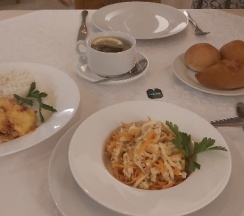 Вкусный завтрак в кафе, хорошее обслуживание в гостинице