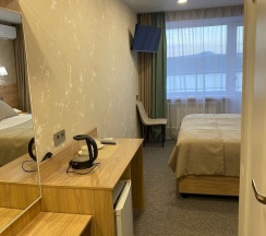 Не могу поставить звёзд меньше, чем пять, потому что гостиница полностью совпадает с заявленными характеристиками и большего от нее не ждёшь. Место, где можно переночевать перед / после похода в горы. Чистое постельное белье, душ с горячей водой, чистые белые полотенца, холодильник в номере. Нет чайника, но, во первых, для эконом номеров он не заявлен, во-вторых, дежурные на первом этаже по просьбе согреют воду, наполнят ваш термос и разрешат воспользоваться микроволновой, если есть потребность. Да, гостиница скромная и находится в процессе ремонта, но на качестве отдыха в ней это никак не отражается.