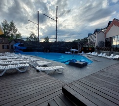 Хороший отель, номера соответствуют фото, в номерах чисто, большая зеленая территория, анимация для детей хорошая, бесплатно кислородный коктейль для детей до 10. Теплый бассейн на улице с горками. Шведский стол небольшой, но вкусный.
