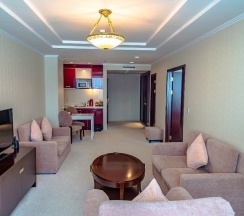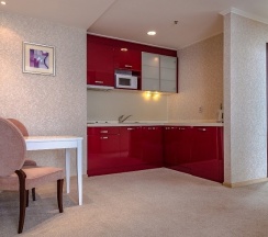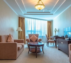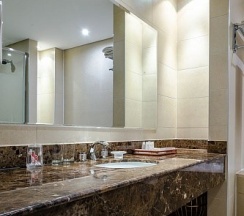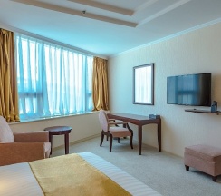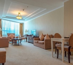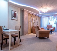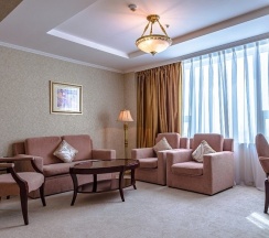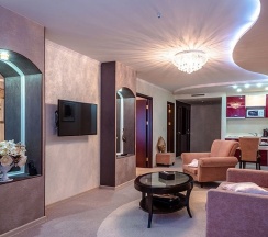 Этот номер носит название отеля. И неспроста: в оптимальную цену за проживание в этих апартаментах заложены все главные составляющие красивой жизни в стиле «Мега Палас Отеля»: просторные светлые комнаты, оборудованные по последнему слову техники, роскошная ванная комната и прочие бытовые удобства. В апартаментах раздельные спальня и гостиная. Поэтому вы можете полноценно отдыхать и работать, не выходя из номера.