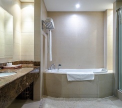 В номере: 3 телевизора, 4 телефона, Интернет, спутниковое телевидение, система климат-контроля, комплект офисных принадлежностей, душевая, ванна.