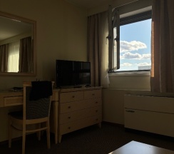 Номерной фонд довольно старенький(еще со времен, как появился запрет на курение в номерах, поэтому есть запах прокуренности, но это если придираться. Лично мне - не критично). В номере чисто. Кровати удобные. Есть кондиционер.Персонал приятный. Хороший завтрак по типу "шведский стол".