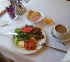 Шведский стол на завтрак далеко не европея, и спагетти, и маринованные огурчики, котлетки, овощи свежие и запеченные, соки, кофе и тд. Жаль только что воды газированной минеральной не было, но не страшно.