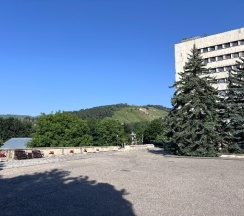 Территория. Санаторий находится на высоте 900 метров над уровнем моря. Место тихое и спокойное, машины не шумят, воздух чистый. Еда вкусная, сбалансированная, обязательно дают овощи, фрукты, вечером - кефир или йогурт. Что непривычно было для меня, так это картошка с рыбой или котлетой на завтрак. Я больше привыкла к кашам или омлетам. Кашу можно самим положить в дополнение к картошке с рыбой. Дают также бутерброд с маслом и красной икрой, или красной рыбой, или сыром. Напитки с утра разнообразные - шиповник, чай, кофе, какао, молоко. Каждый день сам формируешь себе меню на следующий день, исходя из предложенных блюд. Если ребёнок до 4 лет, ему дают кашу или супчик. Музыку в столовой нужно более спокойную включать. А то как будто на дискотеку пришёл. Базового лечения много. На третий день мы уже устали ходить на процедуры, хотелось просто лежать, а тебе надо опять куда-то успеть. Есть игровая для детей с 9.30 до 13 часов. Мой ребёнок не хотел оттуда уходить. Спасибо большое Светлане Витальевне за присмотр за ребёнком.