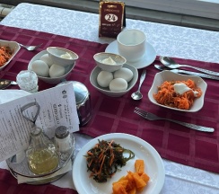 5. В столовой Кормят очень хорошо, разнообразно. Мясо, рыба, овощи, гарниры, порции хорошие если не хватит есть закуски на завтрак и обед. В обед обязательно фрукты. К ужину булка + кисломолочка разная - кефир, ряженка, фруктовый йогурт ( все всегда свежее).