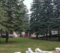 Отдыхаем с 5 августа. Номер небольшой, с хорошей двуспальной кроватью. Отличное белье и постельные принадлежности, белье прекрасного качества. Полотенца меняют каждый день, номер убирают тоже. Кондиционер работает отлично и бесшумно. Холодильник тоже без нареканий, тихонечко работает, правда, морозилки нет. Набор процедур вполне устраивает. Есть неплохой набор платных допников. Кормят вполне неплохо, не буду снижать оценку за не приветливых дамочек, работающих на раздаче, и плохенький кофе всего в двух аппаратах на большой столовый зал. Территория ухоженная, но бедненькая, хотя сейчас во всю идут работы по ее благоустройству. Белки носятся по деревьям - очень мило. Ресепшен без нареканий. Отзывчивый медперсонал, а врач Ольга Евгеньевна просто влюбляет в себя и заряжает оптимизмом на весь заезд. Обязательно вернемся по возможности.
