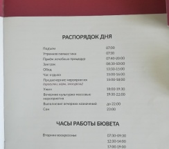 В столовой вкусно, но мало еды которую будут есть дети. А так всё хорошо 👍 . И персонал вежливый, убираются каждый день. Даже развлечения есть!