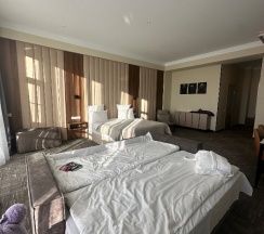 Отличный отель! Очень комфортный номер Deluxe угловой, есть все необходимое: два ТВ, электрочайник, Wi-Fi, холодильник, кресла, стулья. Супер удобная кровать огромного размера, отличного качества постельное белье, подушки огонь! Завтрак просто бомба, подобрать можно на любой вкус! Отдельно хочется отметить местоположение: самый смак в тишине и покое, прямо в лесу в подножья горы, именно то что необходимо, чтобы отвлечься в отпуске от рабочих будней. Очень дружелюбный и приятный персонал!