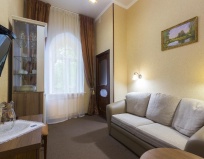 Уютный "домашний" санаторий, еда как и везде диетическая. В номерах 1-й категории все необходимое имеется. Балкон выходит прямо в Курортный парк. Два Источника в шаговой доступности, плюс к немедикаментозному методу лечения в санатории относят терренкур. По вечерам прогулки по огромному парку!
