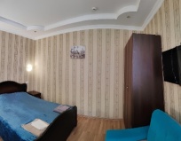 Понравилось: Номер маленький, но дискомфорта не чувствовали. Жалюзи на окнах, вид во двор многоквартирного дома, относительно тихо. Достаточное количество розеток. В гостинице два туалета и одна душевая - очередей не было. Есть кухня, но ей не пользовались. В коридоре - утюг и гладильная доска. Рядом с гостевым домом магазин, где можно купить водички или что-то поесть. До Колоннады минут 10-15 пешком. Примерно столько же до Кисловодской ярмарки, чуть дольше до Центрального рынка. Район с перепадами высот - будьте готовы к этому, если идете пешком.