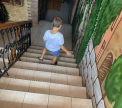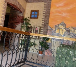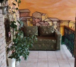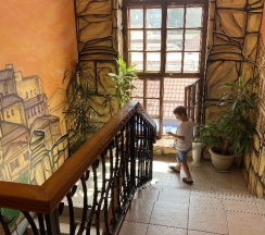 Отличное соотношение цена-качество. В номере всё есть. Окна пластиковые, кондиционер. Есть полноценная кухня. Завтрак включён в стоимость проживания. Интересно расписаны стены в коридорах.