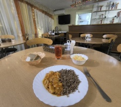 Очень приличный вариант размещения для постояльцев с автомобилями. Недостатков набралось пара. Это не очень удобный матрас на скрипучей кровати (у жены, кстати, матрас был поприличнее и кровать не скрипела и недостаток крючков в санузле. Приходилось извращаться, чтобы повесить полотенце. А так, кормят вкусно и недорого, полотенца меняют ежедневно. Персонал очень отзывчивый. Особенно понравилась опция отложенного обеда или ужина. Что очень удобно. Не надо подстраиваться под режим работы кухни.