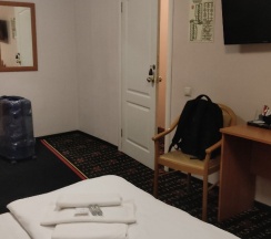 Забронировала номер ,выбирать времени и сил не было, опасалась увидеть страшный отель как пишут в отзывах , оказалась очень даже приличный отель , просторная комната , приятный запах, тв , холодильник все работает, на столе кофе чай , мелочь но приятно, админы вежливые , на 1 эт работает шведский стол , аэропорт в шаговой доступности , минусов не нашла