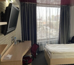 Была в декабре 2025г.в отеле. Отель находится напротив ЖД вокзала. Номер был одноместный, улучшенный. Номер понравился. В номере кровать, трюмо, кресло, телевизор, кондиционер, сейф, белый махровый халат, тапочки, полотенца, фен, гель для душа, шампунь, зубная щётка, паста, ватные палочки, мыло, щётка и салфетка для обуви. Также на этаже есть гладильная с утюгом и парогенератором. Утром был завтрак, шведский стол, он включен в стоимость. Еды очень много, она вкусная. Спасибо за все!