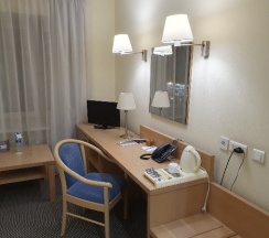 Плюс: в номере есть мини холодильник, ставят бутылочку воды, чайник, чайная пара, чай, халат, тапочки, гигиенические наборы, можно попросить дополнительно чего не достает. Есть полноценный шкаф для одежды, щетка для ухода за одеждой, гигиенические пакеты. Шторы блэкаут. Центральный кондиционер - не шумный, что редко бывает, в номере есть обогреватель и дополнительное одеяло, есть возможность попросить доп. подушку. Постельное белье и принадлежности, полотенца чистые, без запахов, отглаженные, видно, что хорошо работает прачечная. Матрас удобный, хорошо поддерживает.
