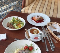 Мягкая постель. Прекрасный вид из окна. Уютный отель в целом. Очень большой выбор блюд на завтрак. Парковка.