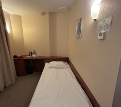 В командировке, брала номер с маленькой кроватью, мне хватило, но для мужчин будет маловато.