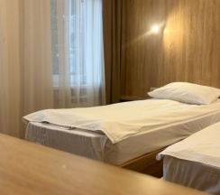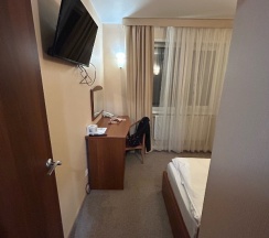 Отель недалеко от центра,по хорошей цене. Бронировали сначала номер на двоих,после на одного. Все прошло отлично. Все необходимое предоставляют. Заселить смогли раньше без доплат(за это отдельная благодарность персоналу) В номерах есть терморегулятор. На телевизоре есть обычные каналы,Кинопоиск,Иви и другие приложения.Персонал вежливый и решает все оперативно. Впервые остановились в этом отеле,в дальнейшем так же будем приезжать.