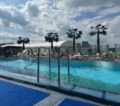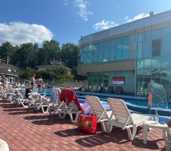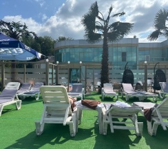 Решили закрыть летний сезон в эти выходные, как раз была отличная погода. Приехали на территорию загара на воде которая около отеля. Позагорали, покушали – есть бар с едой и напитками. Поплавали в бассейне, вода теплая, хорошая. Парковка бесплатная. В следующий раз приедем с ночевой на пару дней!