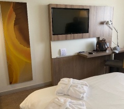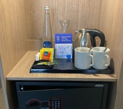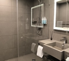 Очень приятный отель в центре города. Чисто, санузел раздельный. Вода в стеклянных бутылках, есть капсульная кофе-машина, чай, сахар, сливки. Разово пополняемый мини-бар бесплатный. Все необходимые мелочи: расческа, бритвенный набор, шапочка для душа, ватные диски и ватные палочки, зубная щетка и паста - были на месте.