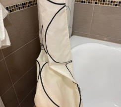 В ванной комнате, комплект средств личной гигиены,, чисто.. Но! шторка для ванны, толи грязная, то старая. Вид ужасный🙄.
