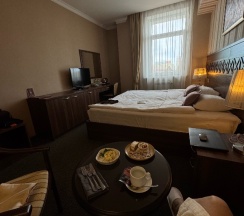 Персонал замечательный и очень вежливый, поворам отдельное спасибо! При нашем посещении, ресторан при отеле был закрыт на спецобслуживание, тем не менее, вкусно и оперативно приготовили и быстро доставили заказ в номер. Ещё не раз с удовольствием у вас остановимся!