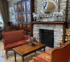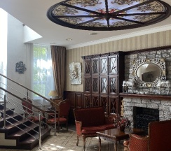 Очень интересный отель! Своих, 4-е звезды, точно заслужил, вот не приобрел, а заслужил! Остановился второй раз, целенаправленно! Комфортное место, не далеко от центра. Место для релакса без шума и суеты. А если вы еще любитель русской бани.., то вам точно сюда. Рядом банной комплекс: заказать парщика, который из вас душу вывернет, пропарит, и вернет обратно. Повариться в котле? Тоже легко. А утром на завтрак. Отличная кухня. Обязательно попробуйте: борщ, солянку и блины с мясом.