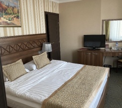 Прекрасный отель, были в стандартном номере. Очень довольны остались, душ с ванной, все принадлежности присутствуют. Ресторан на уровне, можно подымить кальяном. На территории есть банный комплекс, мы к сожалению его не посетили, очень устали. Для гостей отеля действует скидка. Завтрак достойный, если нужно уезжать раньше начала завтрака, без проблем соберут ланч бокс. Но лучше завтракайте. Однозначно рекомендую! Будем проезжать, обязательно посетим вновь!