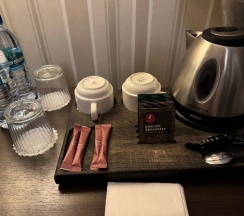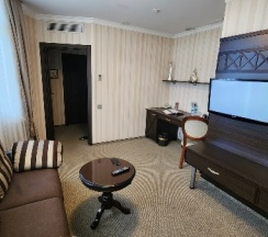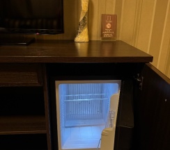 В гостиной выключатель сломан, постоянно мигал свет. Пришлось, не включать. Чайная зона, которая, мягко говоря, удивила😊. Кроме кружек и пакетиков чая, ничего нет!!. Даже ни одного блюдца, элементарно пикетированного кофе. Пришлось покупать одноразовую посуду, чтобы попить чай с десертом и вкусняшками привезенными с собой. Даже в категории «стандарт», полный мини бар за отдельную плату.
