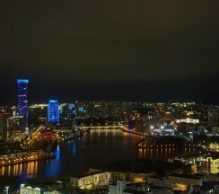 Крутейший вид из номера (брали джуниор сьют), шикарный угловой двухкомнатный номер с окнами в пол. Все красиво, чисто и очень уютно. Вкусный завтрак на 37 этаже в формате шведского стола включён в стоимость. Бассейн (внимание! Крытый! Не тот который под открытым небом на 54 этаже) в подарок на 1 час с сауной! В подарок билеты в музей Высоцкого (не воспользовались к сожалению)