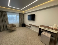 Я проживала с 23 по 27 июля, вижу сам отель давний, но идет ремонт номерного фонда, и это хорошо. У нас был хороший номер, с новой мебелью, белье чистое. И очень понравился матрас, прям идеальной плотности для меня. Есть все, что необходимо, холодильник, фен, чайник , все работало. Завтраки шведский стол, есть выбор, наедались хорошо. Мы целыми днями ездили на экскурсии, поэтому приехать, помыться и выспаться на удобной кровати- хороший вариант.