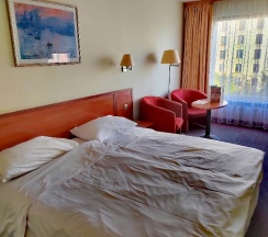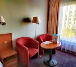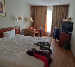 В целом, мне всё понравилось. Отель и номера конечно нуждается в ремонте, но не критично. Вежливый персонал, все просьбы были удовлетворены, завтрак отличный, большой выбор, есть сауна за доп.плату(бронь заранее), бесплатный тренажерный зал. На территории есть ресторан и бар, цены выше среднего, вкус еды средний.