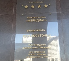 Очень понравился отель, выбирали между двумя самыми известными отелями Мурманска и очень рады что остановили свой выбор именно на Меридиане. Приятный вежливый персонал, отличная инфраструктура, приятный запах во всем здании, большой просторный номер с отличными подушками и матрасами, есть косметика, фен, утюг на этаже, всё очень чисто, лично мне придраться абсолютно не к чему. Завтрак на 5+, хороший выбор вкусной выпечки, вкусный чай, рыба, овощи/фрукты, яйца, голодными остаться невозможно. Если еще когда то буду в Мурманске, буду останавливаться только тут)