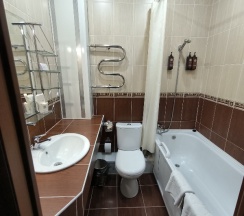 Порадовало, что в номере в полноценном объеме представлены средства гигиены. Не в отельных версиях шампунь и мыло, а прям в бутылках, это очень здорово, потому что у меня длинные волосы и мне постоянно мини-версий не хватает. Косметика качественная, вся сантехника чистая, нет разводов, нет налёта. Спасибо!