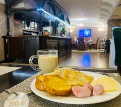 Жили в гостинице с 1 по 3 мая 2025 года. Номер нормальный, было чисто, бельё белое, но как и год назад пахнет канализацией, но с открытым окном вполне терпимо. Завтраки в этом году были отличные, по сравнению с тем годом. В том году нам говорили - да, всё кончилось, а в этом девочки постоянно подносили тарелки с продуктами и тарелки никогда не были пустыми, всё быстро и оперативно убирали со столов, приятные, опрятные, культурные, в том году стояли ооочень молодые как будто школьницы и особо не заморачивались. Продукты были свежие и было достаточно выбора, чтобы назавтракаться вдоволь. В ресторане, где проходят завтраки уютно и красивая мебель. Особенно вкусный творог уже на протяжении многих лет! Гостиница удобно расположена и если плохая погода, то можно там и сидеть, так как там все развлечения и боулинг и бильярд и ресторан и бар. Рядом магазин красное белое. Рядом церковь.