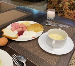 ✔ Вкусные завтраки, разнообразные, два вида каши, овощи, гарнир, творог, выпечка и т.д., всё очень вкусное и сытное, приятная атмосфера в ресторане.