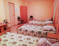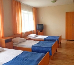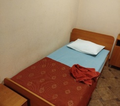 Номер на 3 человека. Чистый, скромный (эконом). 3 отдельные кровати с белым постельным бельем (сатин). Никаких посторонних запахов. Есть телевизор, но нет кондиционера. Шкаф и тумбы. На 2 номера один общий туалет и одна душевая. В коридоре имеется кулер с чистой водой (хол, гор). Стаканы в номере.