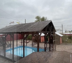 Очень понравился сам бассейн- кайфова, очень тёплая вода, с детьми прям идеально. Есть 2 беседки, сауна, мангал, качели. Но имейте в виду- раздевалка и туалет далековато от самой зоны отдыха, проходить каждый раз приходится через администратора. И если для тёплого времени года-это не проблема, то зимой я бы не поехала.