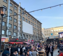 Кажется это самое тусовое место Новосибирска. Весь первый этаж занят разнообразными кафе и ресторанами, по вечерам танцы. Соответственно шум, толпы, тачки. Для кого-то это и плюс, но мы хотели выспаться 🤷
