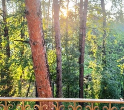 Хочу поделиться об отдыхе в Лесной сказке,поскольку сама обычно выбираю места для отдыха ориентируясь на отзывы. Завтра заканчивается отдых. Отдыхала с дочерью и внуком 6 лет. Брали номер люкс двухкомнатный. Цель- оторваться от суеты рабочих будней, побыть на свежем воздухе. Лечения не предусматривалось. Вот наши впечатления. Сам пансионат неплохой, но возрастной, требуется ремонт фасада, очень неприглядно выглядит и входная группа, отсутствует пандус. Внутри все гораздо приличнее. Номер сначала достался без балкона, на третьем этаже второго корпуса. На следующий день был выезд, по нашей просьбе переселили этажом ниже, с балконом. Приличный ремонт, уютно,чистое бельё, ортопедические матрасы. Нет претензий. Проблема с горячей водой. Чтобы помыться нужно спускать очень долго воду. Территория небольшая,зелёная. Нет садовника.,сейчас чувствуется отсутствие ухода, если у входа клумба ещё более менее, то в стороне от корпусов все цветники заросли сорняками, траву не косят,кстати, это очень вредно для аллергиков, у нас было обострение по приезду. Если бы привели озеленение в порядок, поставили вдоль дорожек качели, детскую площадку, то впечатления были бы другими. О питании. В пансионате отдыхает много пенсионеров, наверняка по бесплатным путёвкам. Поэтому нет шведского стола, есть заказное меню. Первый день все было вообще не вкусно. Взрослые то ещё могут поесть,а вот ребенок остался голодным. Благо недалеко есть магазины,пришлось покупать продукты. В следующие дни было получше . Но не чувствуется желание накормить людей пусть простой, без изысков,но вкусной едой. Правда два последних дня сказали что был другой повар, и мы это сразу почувствовали, внук на ужине все съел) Так что не все потеряно)) Пляж..ну это громко сказано.. К нему ведёт очень крутая, длинная лестница, говорят сто ступеней, это тяжело для пожилых и маленьких детей. Детской анимации нет вообще.