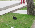 На территории живут кролики, их много, бегают свободно, очень милые.