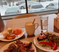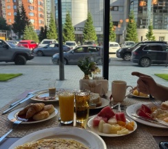 Замечательные, вкусные и очень разнообразные завтраки! Хорошие соки и кофе, красная рыба, фрукты, очень свежая выпечка. Гигантская банка нутеллы, а так же наличие мармеладных мишек и маршмеллоу привели сына в восторг🎉 каши и горячие блюда, колбасы - все супер вкусно))