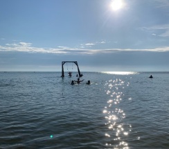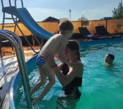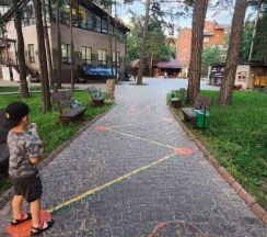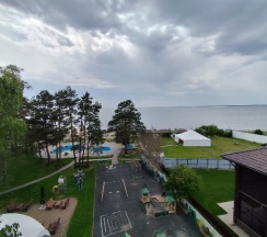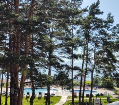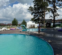 Соляная пещера есть небольшая, свободное посещение, очень удобно. Небольшой тренажерный зал, тоже неплохой. Есть аквацентр, но это слишком громкое для него название. Пускают по 10-15 чел, нужно предварительно записываться. 15 человек это вообше перебор, будет очень тесно. Небольшие финская и турецкая сауны. Небольшой бассейн и небольшая джакузи, которая работает на половину. То есть два угла рабочие, два нет. Ну нам так себе, один раз сходили, больше желания не возникло. Территория очень небольшая, гулять негде, лавочек на берегу 3 облезлые штуки, маловато.