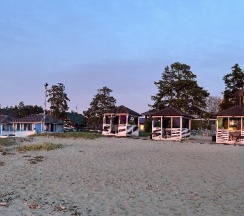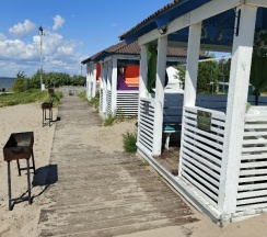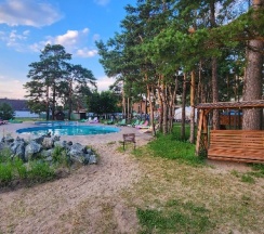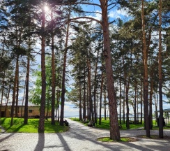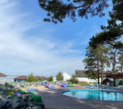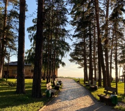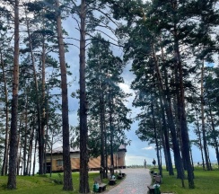 Удачное расположение! Песчаный берег, шикарный горизонт, хвойный лес, уютная территория располагает к полному релаксу! Понравилось разнообразие выбора, можно снять беседку, номер, либо домик.
